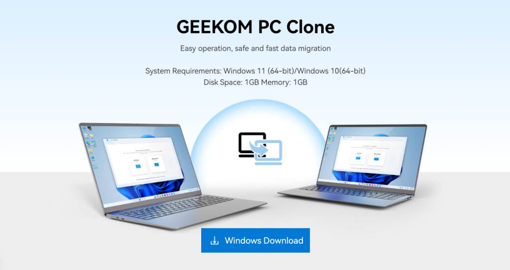 GEEKOM has developed a dedicated software for data transfer that can be used on computers of all brands: GEEKOM PC Clone (click to download)