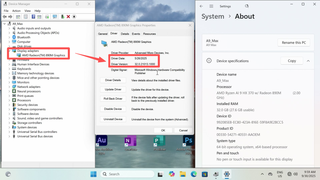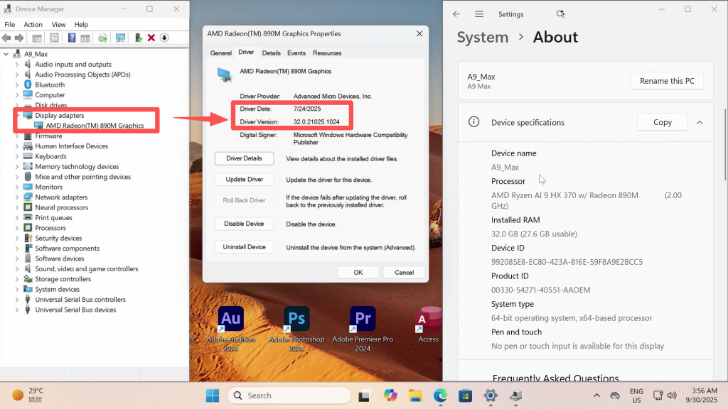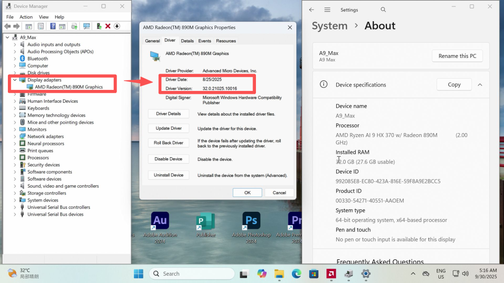 AMD Latest Graphics Driver WHQL (AMD Software: Adrenalin Edition 25.8.1/25.9.1 for Win10/Win11 Aug RDN) Incompatibility with A9 Max