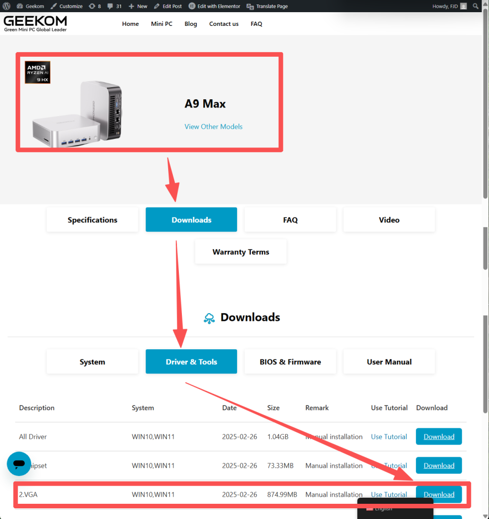 - Go to GEEKOM Technical Support Official Website to Download the Factory Version Driver for A9 Max:AMD Software: Adrenalin Edition Revision Number Adrenalin 25.6.1 (WHQL Recommended)