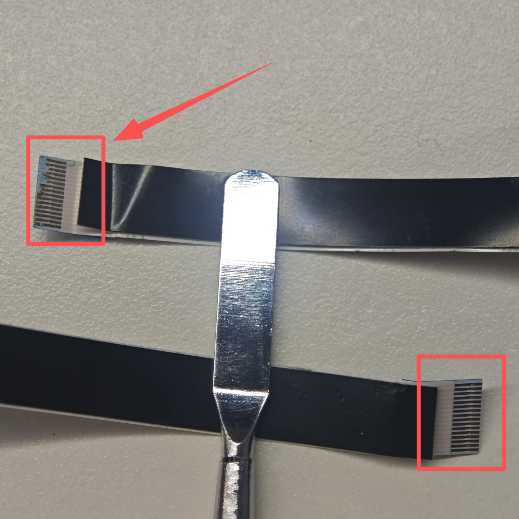 A.Poor contact at the end connector — reconnect the ribbon cable and correct the insertion orientation. Refer to the image below.