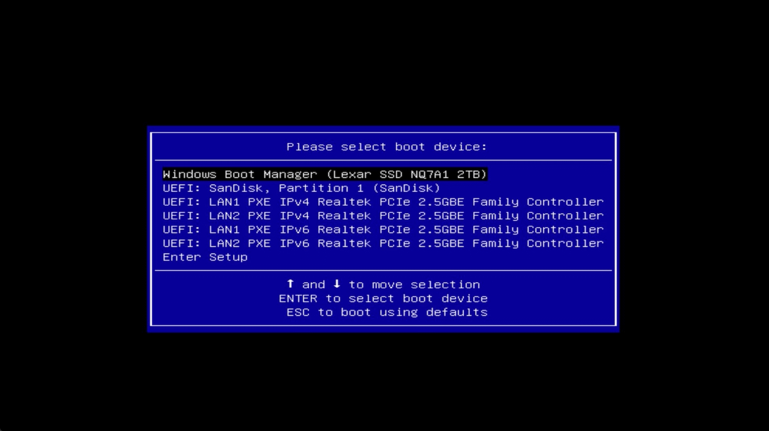 - 2.When the device is powered on or rebooted, repeatedly press the F7 key to enter the boot device selection interface.